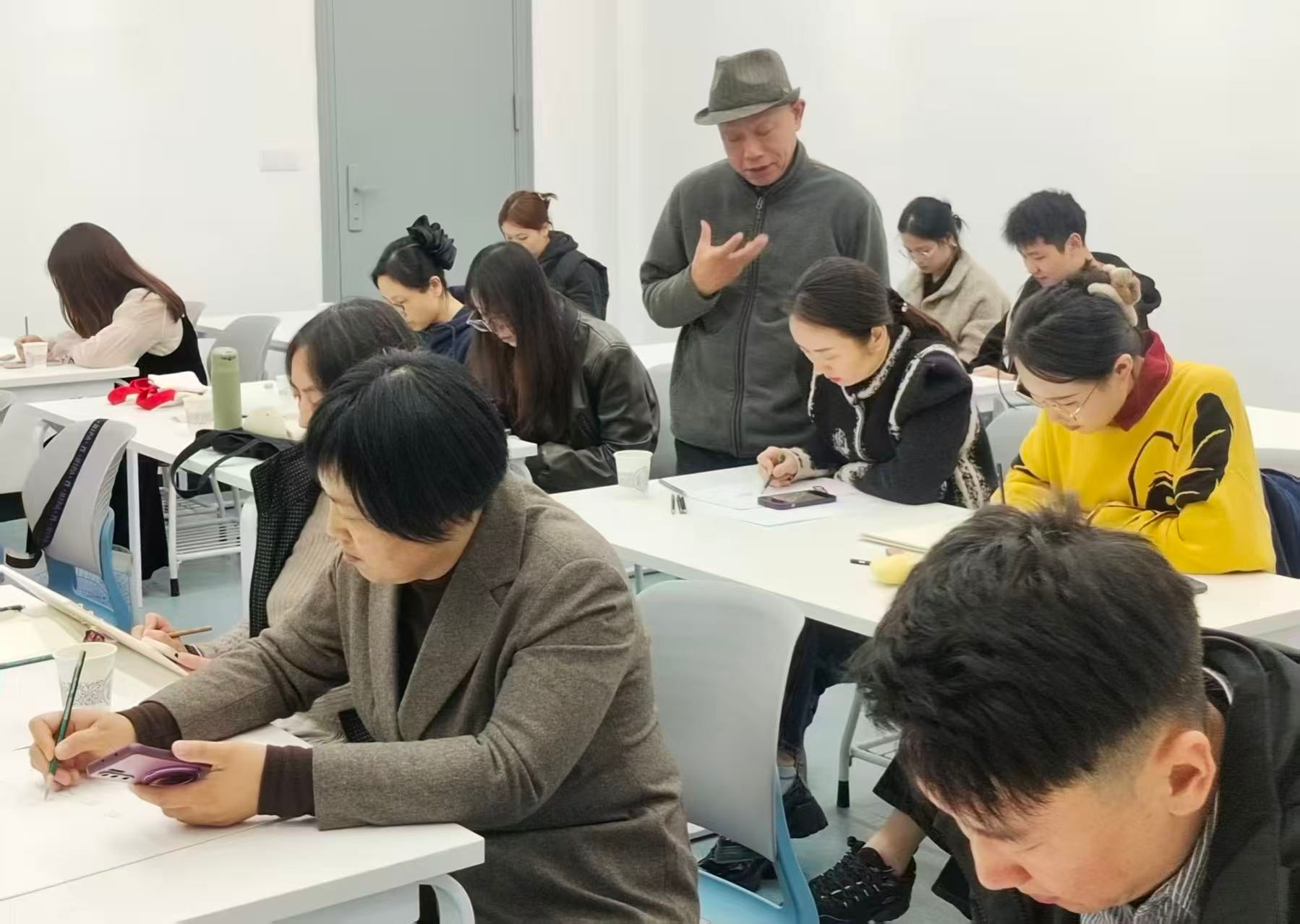 课程兼具专业性与趣味性,教学内容丰富、形式生动。叶军教授主讲的《素描与速写》课程通过解析人物比例结构、赏析大师作品,引导教职工感受线条与造型的艺术表现力;刘智平教授主讲的《水彩技法》课程从材料认识到水墨调和,逐步带领学员体验水色交融的灵动之美;《成人趣味钢琴基础》课程则从识谱入门,让教职工在琴键中初步领略音乐的魅力。教职工们在理论与实践结合中热情投入,从零基础到独立完成作品,收获了技艺提升与审美愉悦。